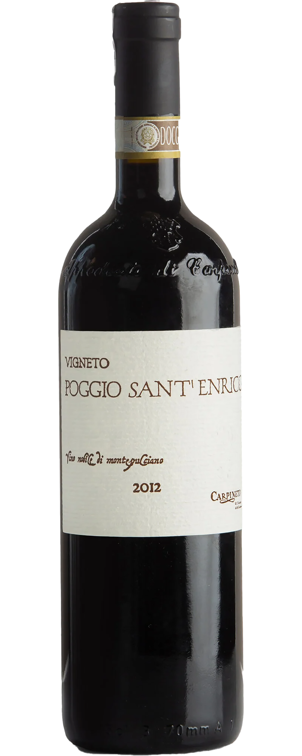 This wine is produced from 100% Sangiovese fruit from the 1.33-hectare Poggio di Sant’Enrico Piccolo vineyard and the 3.65-hectare Poggio Sant’Enrico Grande vineyards. These are single vineyards situated between 300 and 350 metres in elevation on Carpineto’s Chianciano Estate in Montepulciano, with southern exposures on rolling hillsides. The Piccolo vineyard was planted in 1978, and the Grande vineyard was planted in 1995 at a density of 4,464 vines per hectare. The vines are trained to a bilateral cordon with vertical shoot positioning. The grapes are clone SS-F9-A, on a 420A rootstock, which are grown in a deep sedimentary soil with sandy clay and limestone.