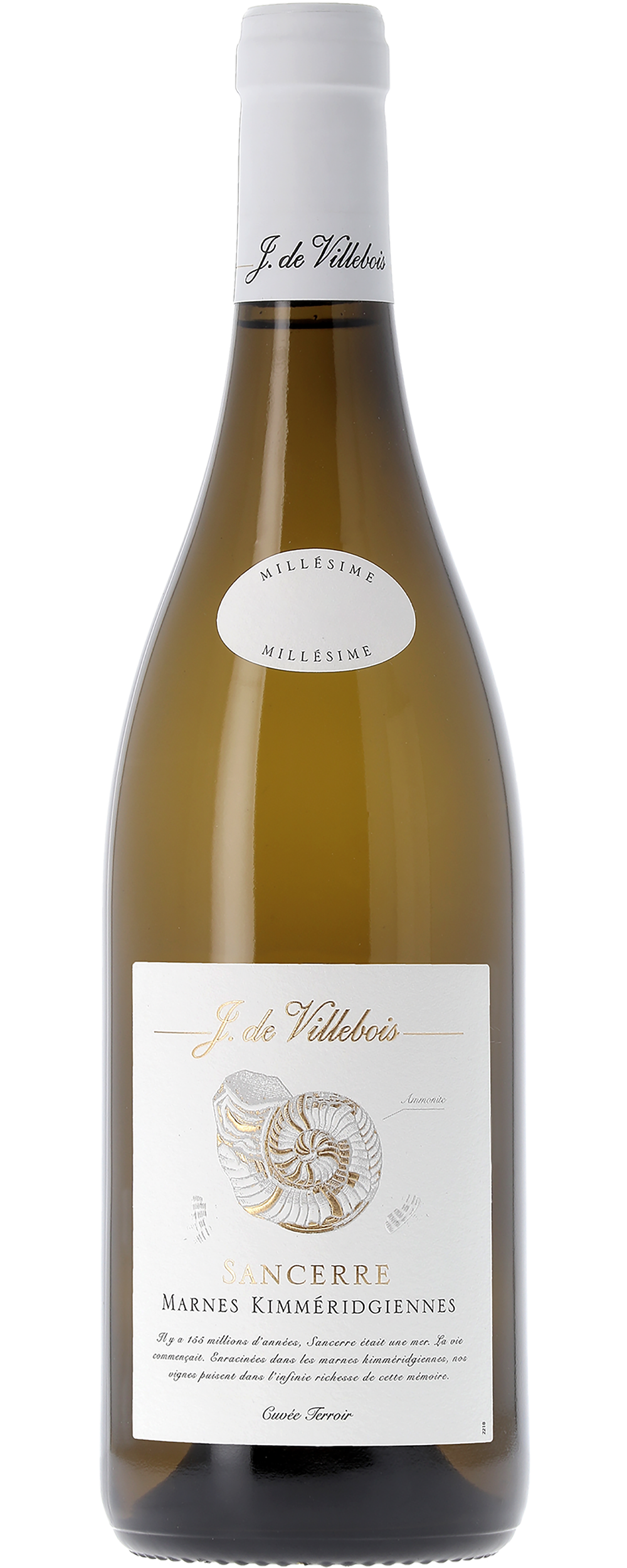The grapes come from the heart of the Sancerre appellation, where the cool-climate terroir and the Kimmeridgian Marne (marl) soils produce distinctive and elegant wines. Layers of small, fossilised oysters interlaced with clay beds hold the secret to this terroir. These lacustrine sediments date back to the Kimmeridgian period, a remarkable 155 million years ago, when the climate of Sancerre basked in tropical splendour. The sea was brimming with diverse marine species, among them, the easily recognisable spiral-shaped Ammonite, which features on the label. Nowadays, the roots of the vines weave through the compact layers of this fossilised soil, producing quintessential, age-worthy Sancerre wines.