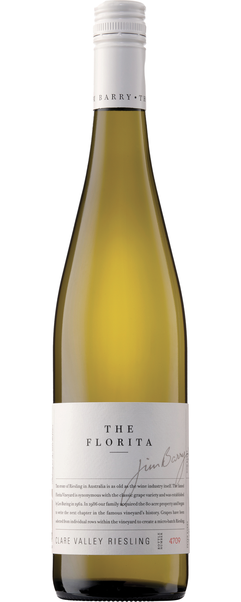 The famed Florita Vineyard is synonymous with the classic grape variety and was planted with Riesling grapes by Leo Buring in 1962. In 1986, the Barry family acquired the 32-hectare property. Florita’ is Spanish for ‘little flower’, and the first release of this micro-batch of premium Riesling was in 2004; it was the fruit of years of patience. Individual rows are selected where the terra rossa and loam soils barely cover the deep limestone below, and the vines deliver a wonderful elegance. The Clare Valley climate is continental, with a high diurnal temperature difference. The cool nights allow the Riesling vines to preserve the crisp natural acidity and delicate flavours.