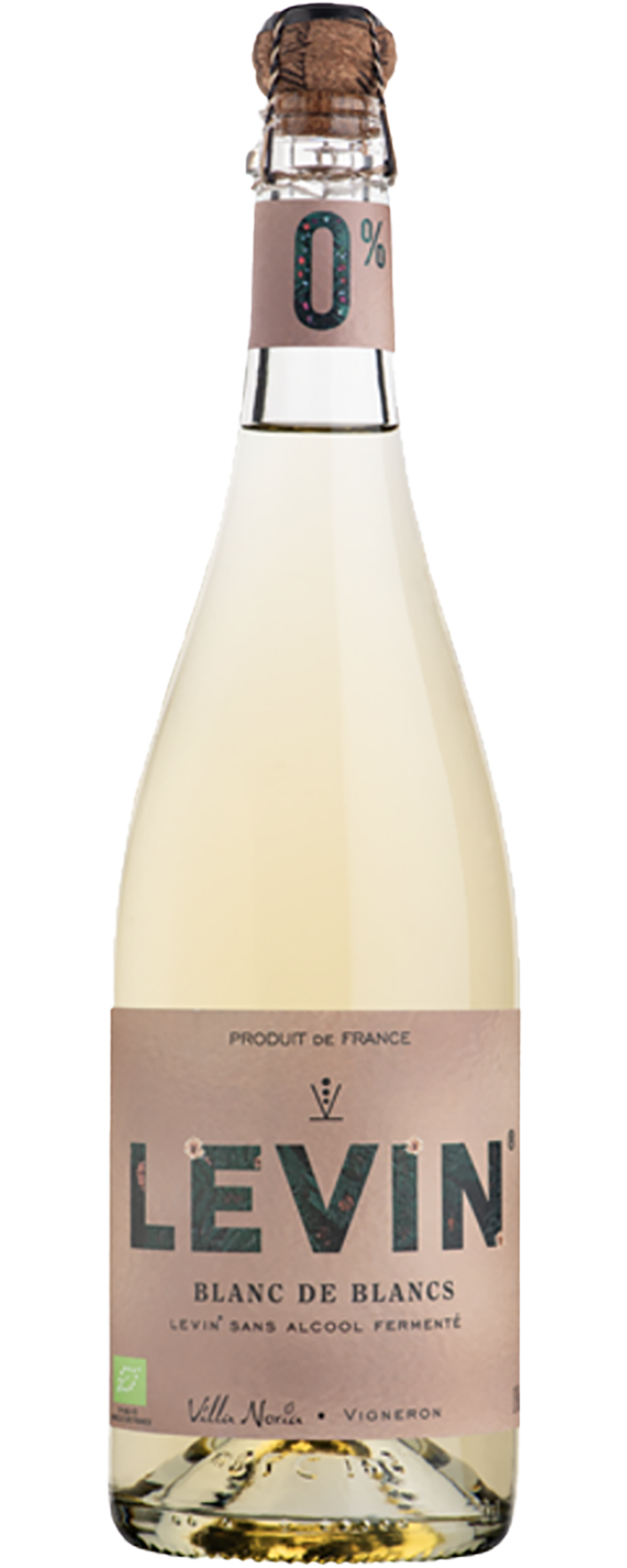 Levin 0% is the first range of organic alcohol-free wine produced by non-alcoholic fermentation with native yeast and lactic acid bacteria. Developed and bottled at the Villa Noria estate, it is vinified without the use of sulphites, preservatives, additional flavourings and without dealcoholisation, which changes the balance of the wine. The Chardonnay grapes were harvested at night to obtain grape juice with high acidity and low residual sugar. After destemming and crushing, 12 hours of skin contact took place at 3 °C to extract the aromas from the skins, followed by a gentle pressing. The juice was fermented with homemade bacteria and yeast strains that produced no alcohol. This non-alcoholic fermentation transforms the sugar from the grape juice into lactic acid, glycerol, CO2 and aromas. A sterile filtration and pasteurisation in a bottle stabilised the Levin 0%.